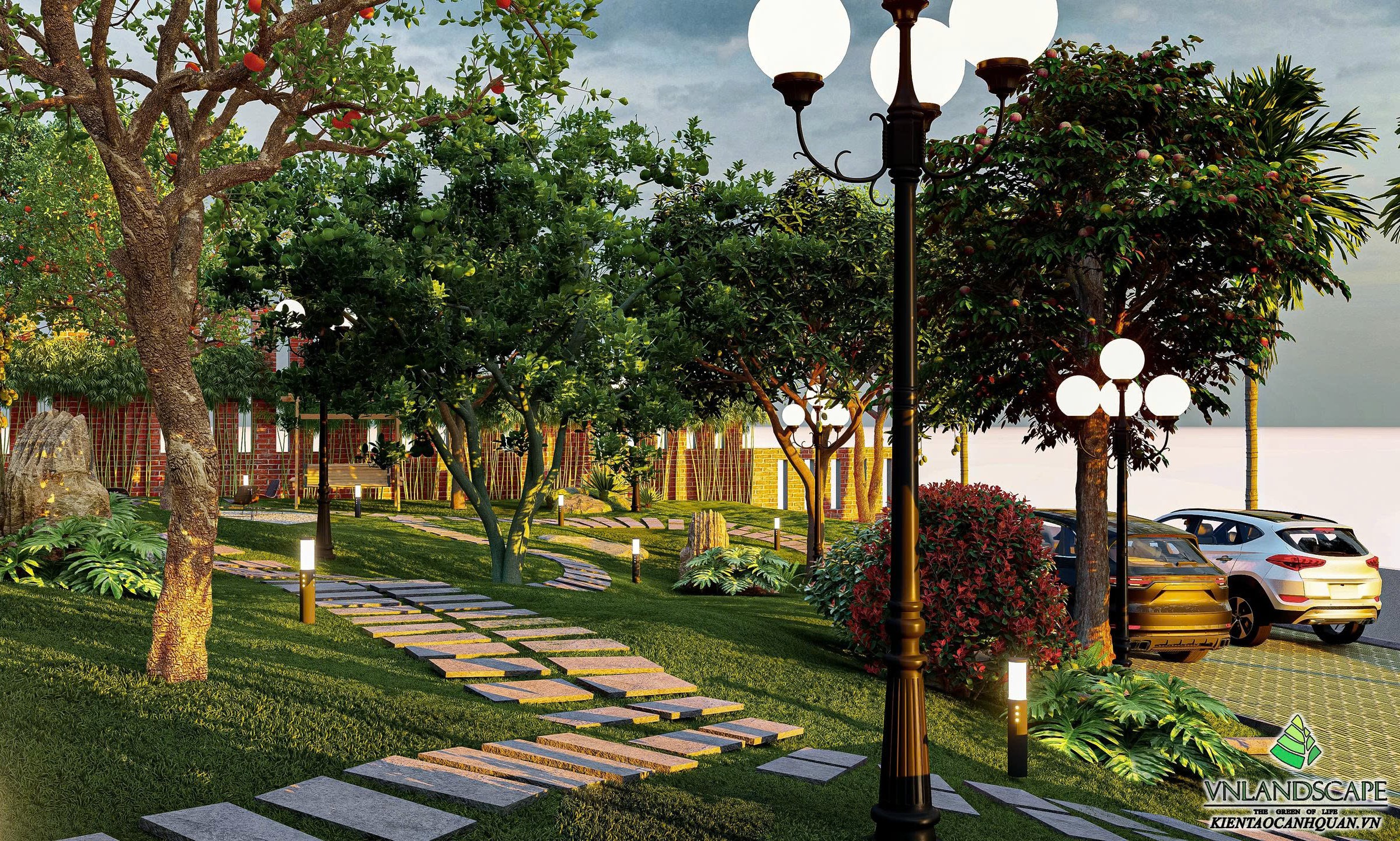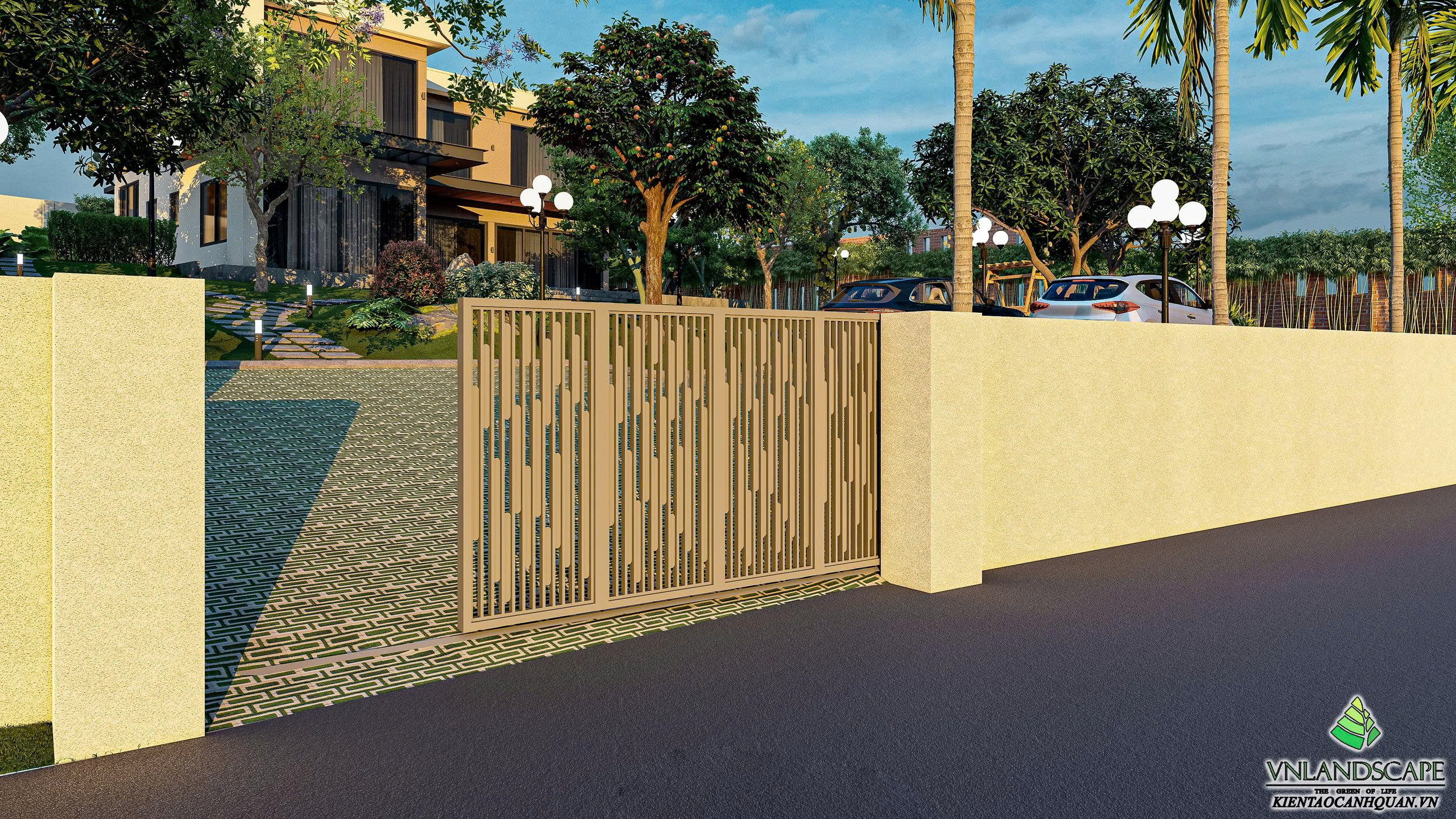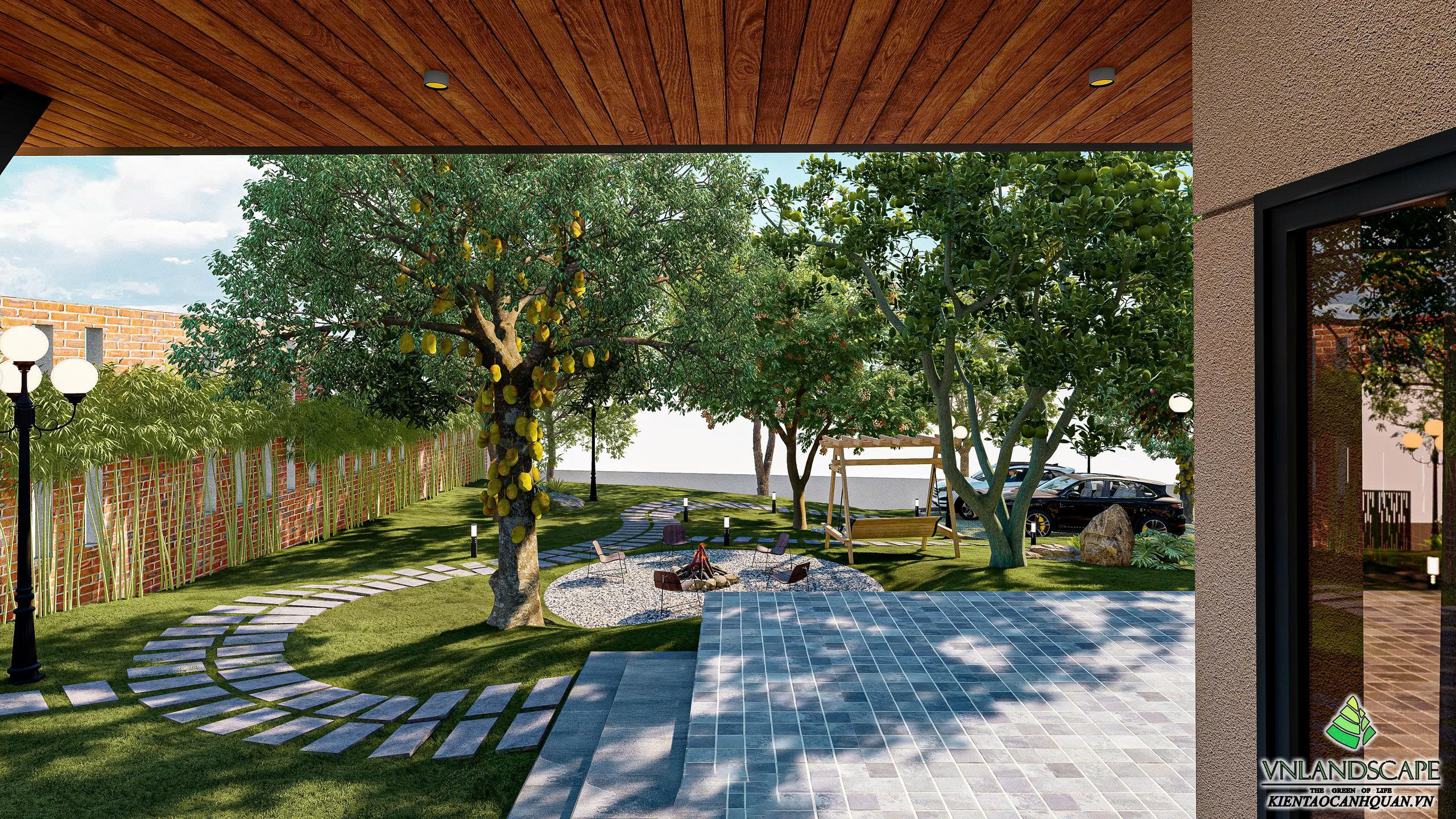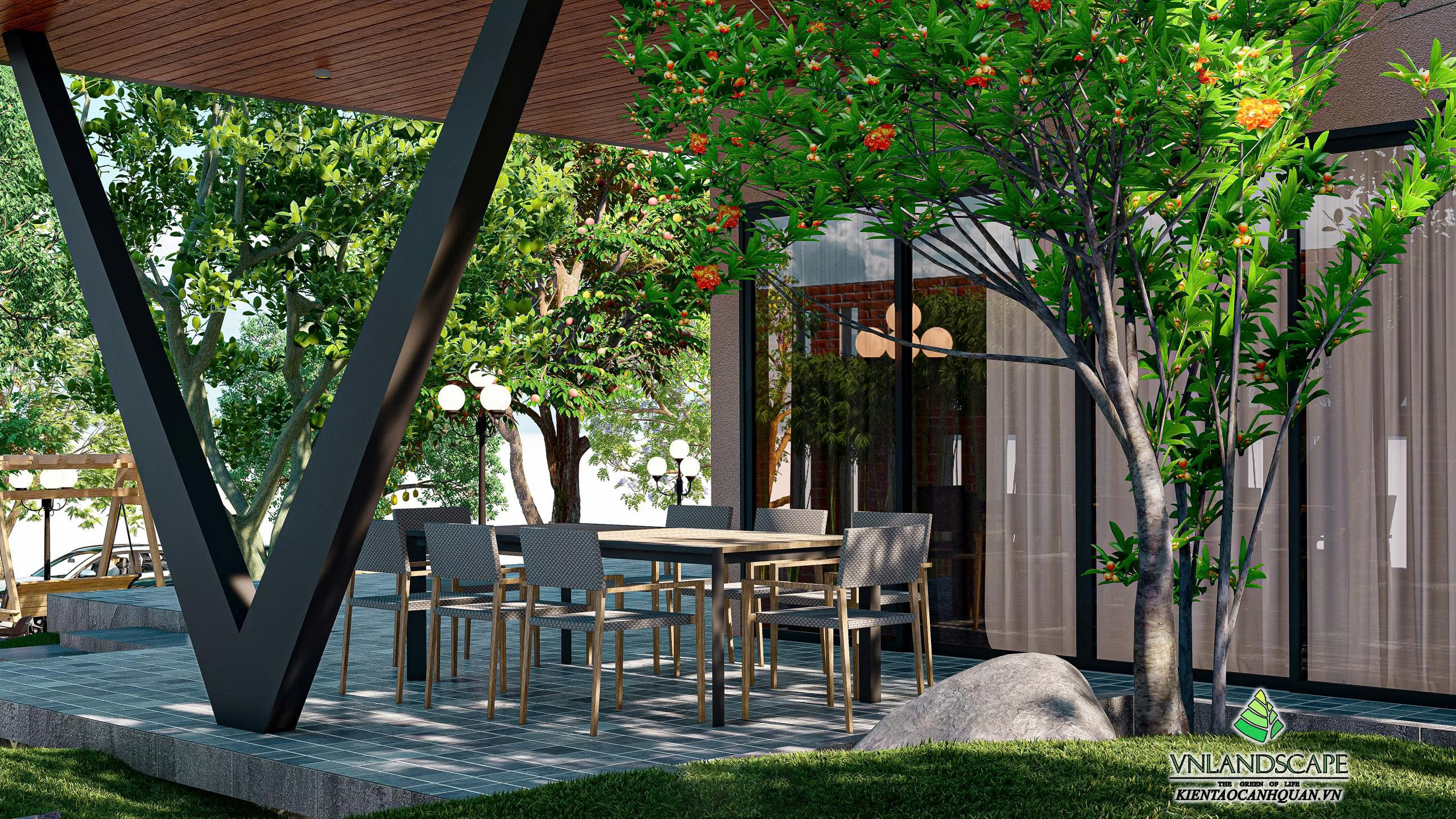 Khu nghỉ dưỡng của anh Vinh tại Hòa Lạc được thiết kế với triết lý “sống hòa cùng thiên nhiên”. Không gian cảnh quan mở, kết hợp hài hòa giữa mảng xanh cây cối, thảm cỏ, lối dạo uốn lượn, mang lại cảm giác thư giãn, tĩnh tại. Ngôi nhà mang phong cách hiện đại, đường nét kiến trúc tinh gọn, nổi bật giữa khung cảnh thiên nhiên xanh mát. Từng chi tiết trong thiết kế – từ bố cục sân vườn, cây trồng, đến hệ chiếu sáng – đều được cân nhắc kỹ lưỡng nhằm tạo nên một không gian nghỉ dưỡng riêng tư, thanh bình và tràn đầy năng lượng.